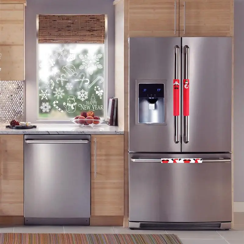 | 3pcsChristmas Refrigerator Handle Cover Microwave Oven Kitchen Appliances Protective Gloves Food Stains Door Cloth Protector |