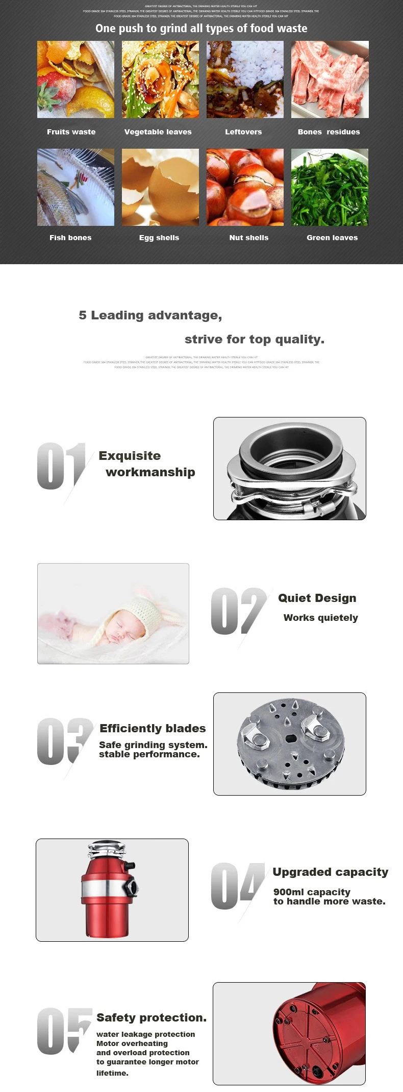 Kitchen Food Garbage Processor Disposal Crusher Food Waste Disposer Grinder Kitchen Sink Appliance