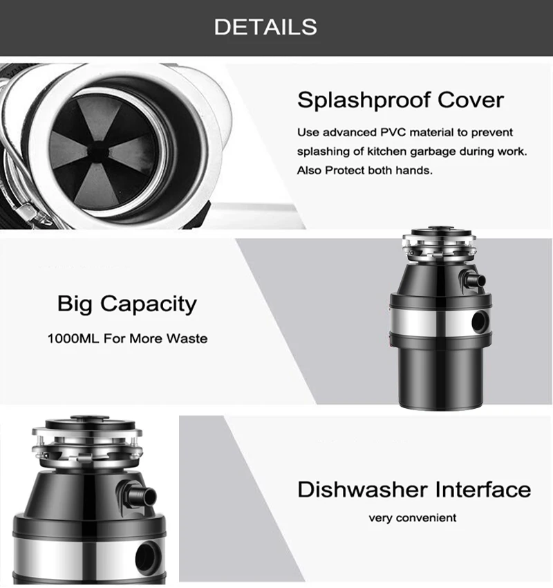 8KG 750W with all parts kitchen food waste disposers Stainless steel Grinder material kitchen applianceBuy Now On Aliexpress