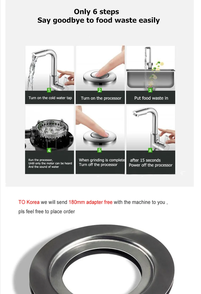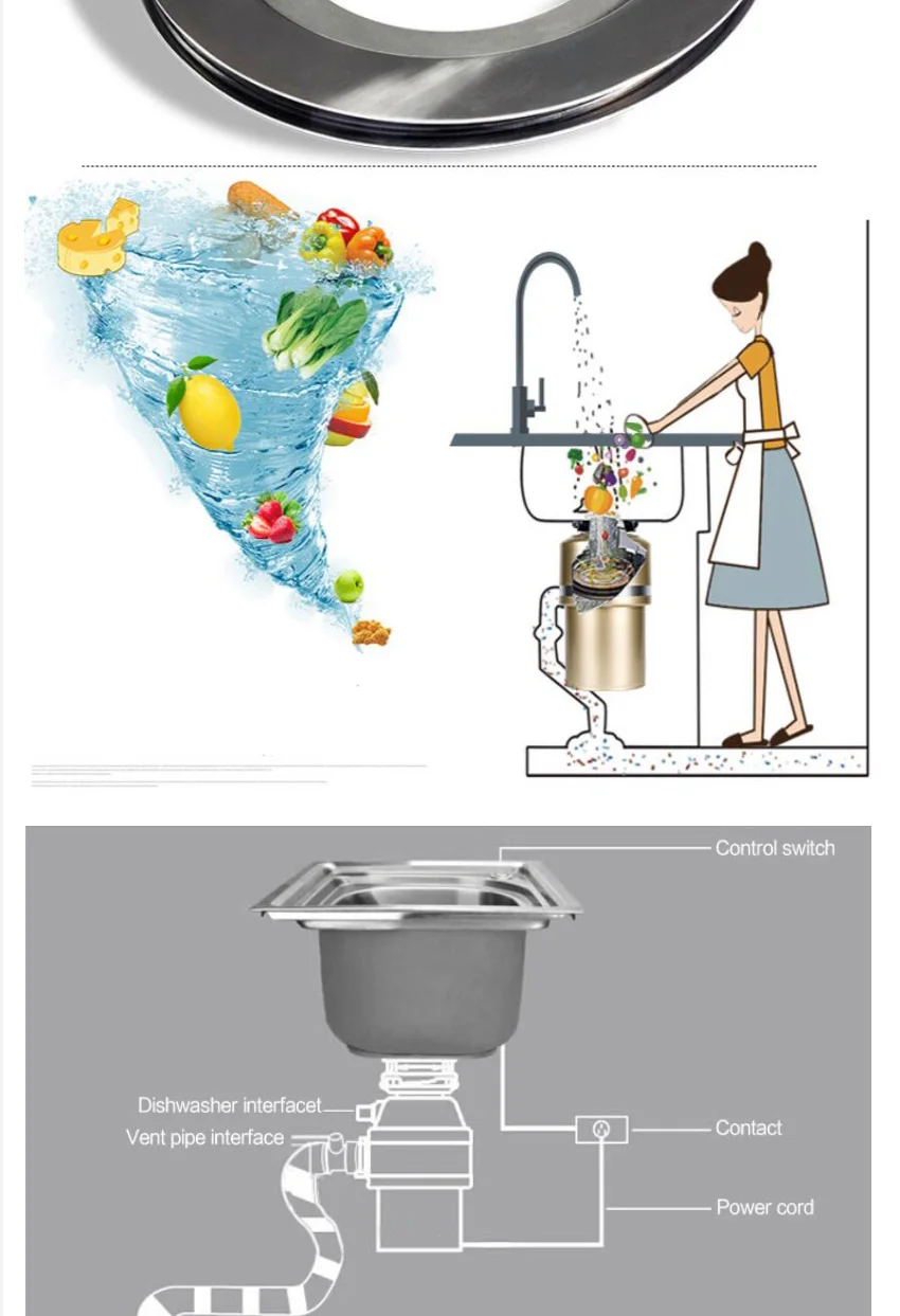800W/370W Food Garbage Disposal Crusher waste disposers Stainless steel Grinder kitchen appliances Germany technologyBuy Now On Aliexpress