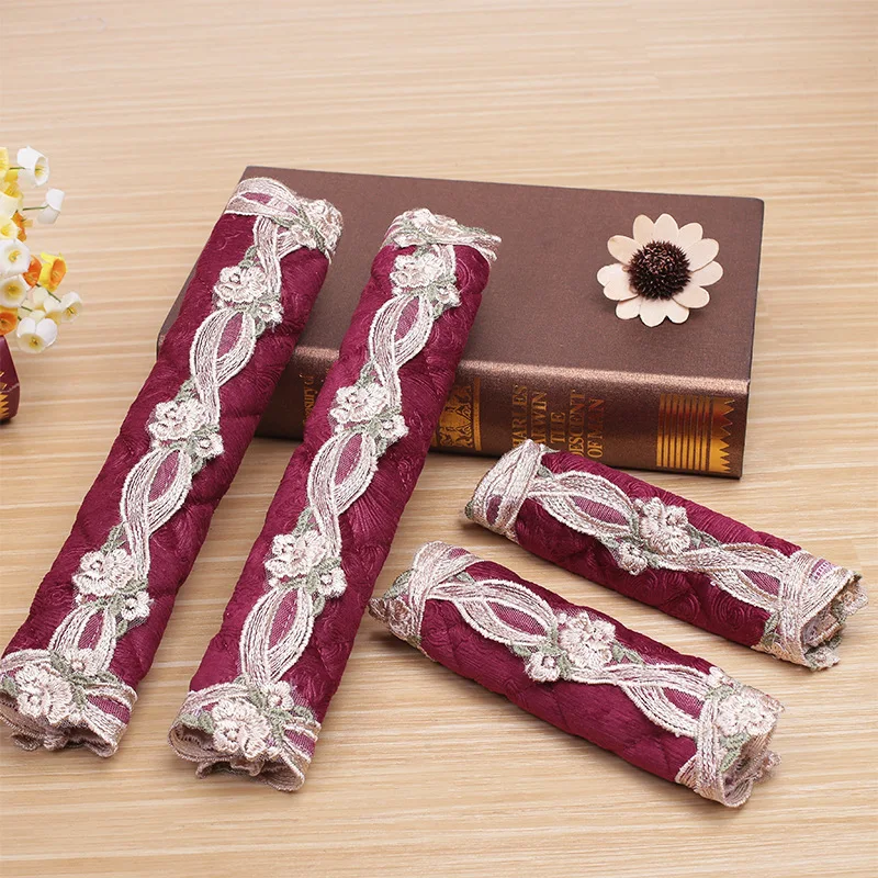 | 1 Pair Refrigerator Microwave Oven Door Handle Cover Gloves Solid Embroidered Lace Fashion Fridge Kitchen Appliance Handle Cover |