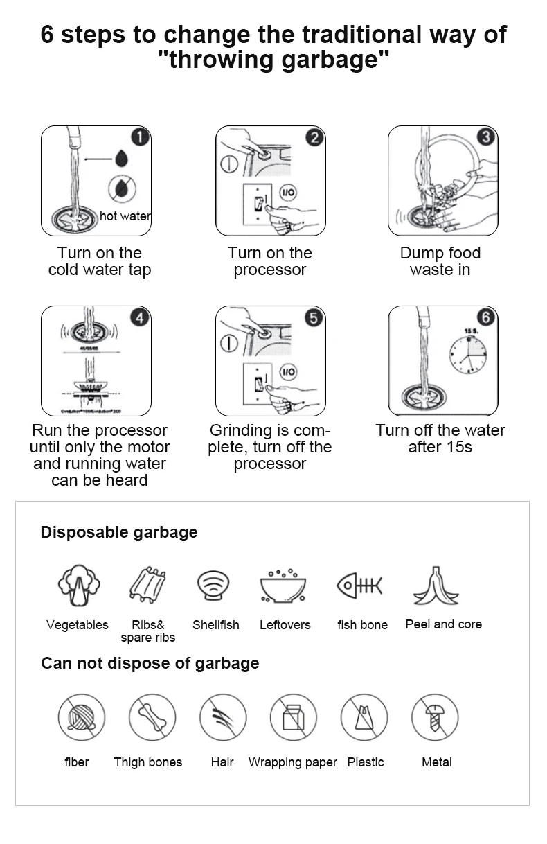Food Waste Disposer Garbage Feed Processor Disposal Crusher Stainless steel Grinder Kitchen Sink Appliance Air Switch 560WBuy Now On Aliexpress
