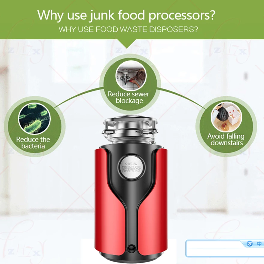 Such is the article Food Garbage Disposal Crusher waste disposers Stainless steel Grinder kitchen appliances Germany technology kitchen