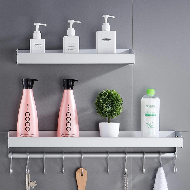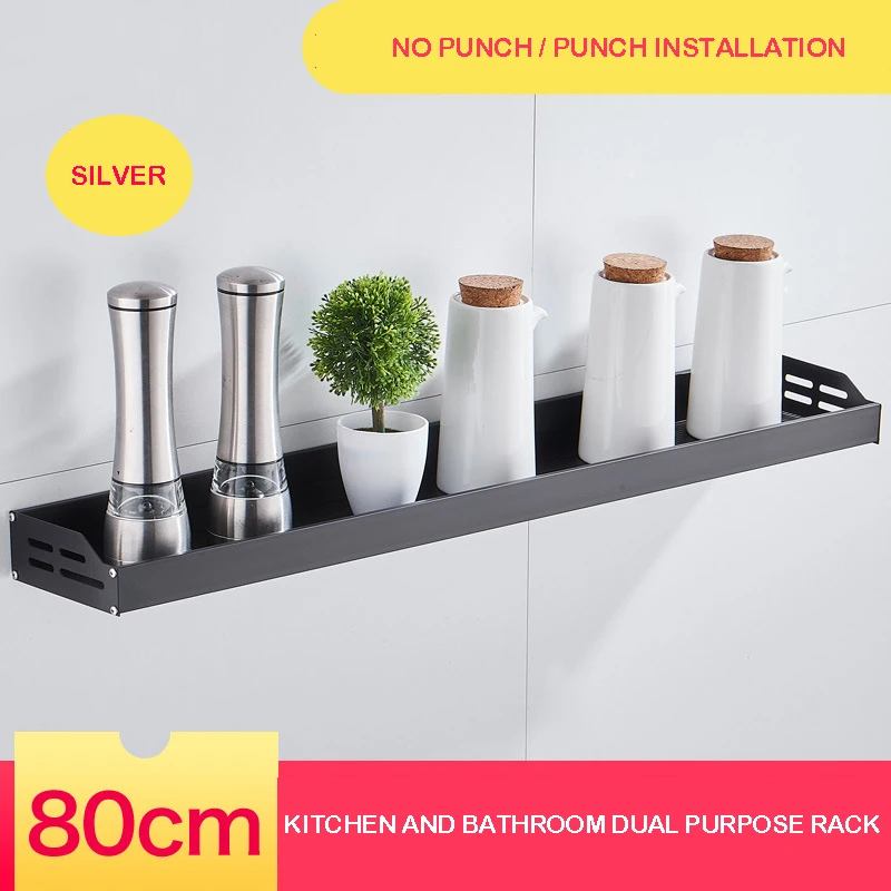 Product Name: kitchen shelfProduct model: JY1024Product material: Aluminum alloyInstallation method: perforated installation / non perforated installationSurface technology: AnodizingStyle: simple styleAccessories: perforated installation screw bag / non perforated cement