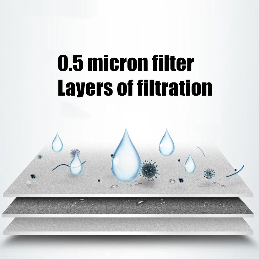 - Uses physical filtration technology and does not use any chemical substances such as chlorine, bromine or iodine