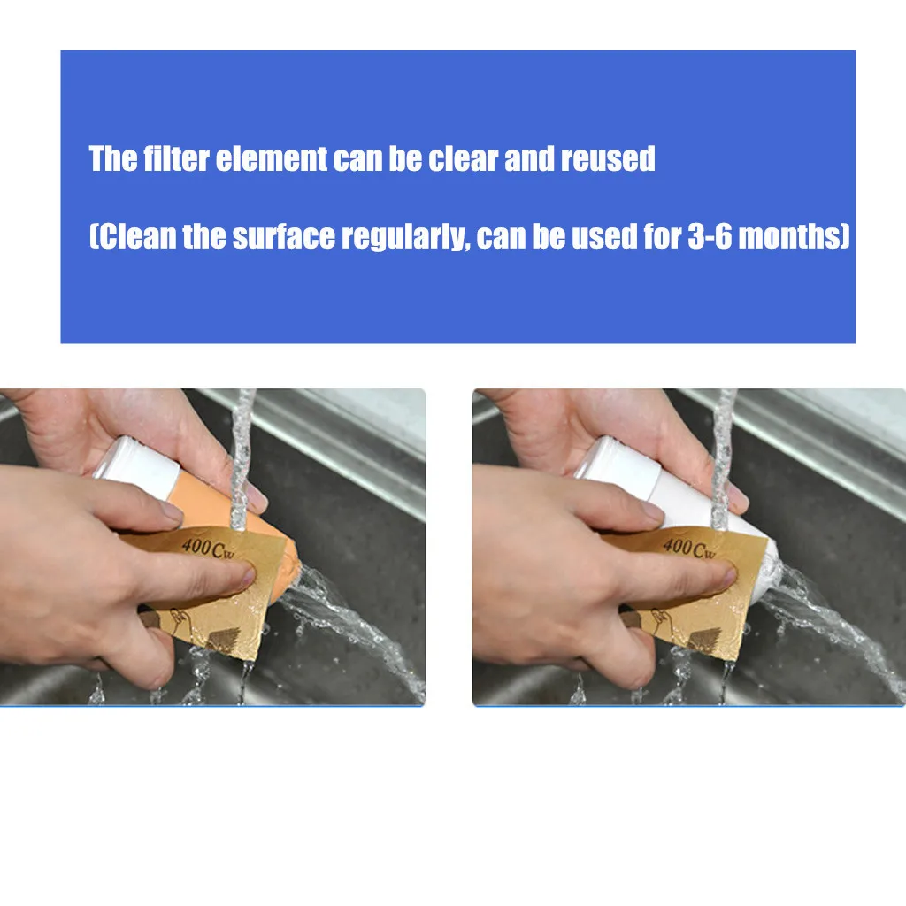 - Just install the filter on the faucet, and the fine stainless steel membrane can effectively remove a large amount of sediment, so that the pure water is also very suitable for washing vegetables and brushing teeth.