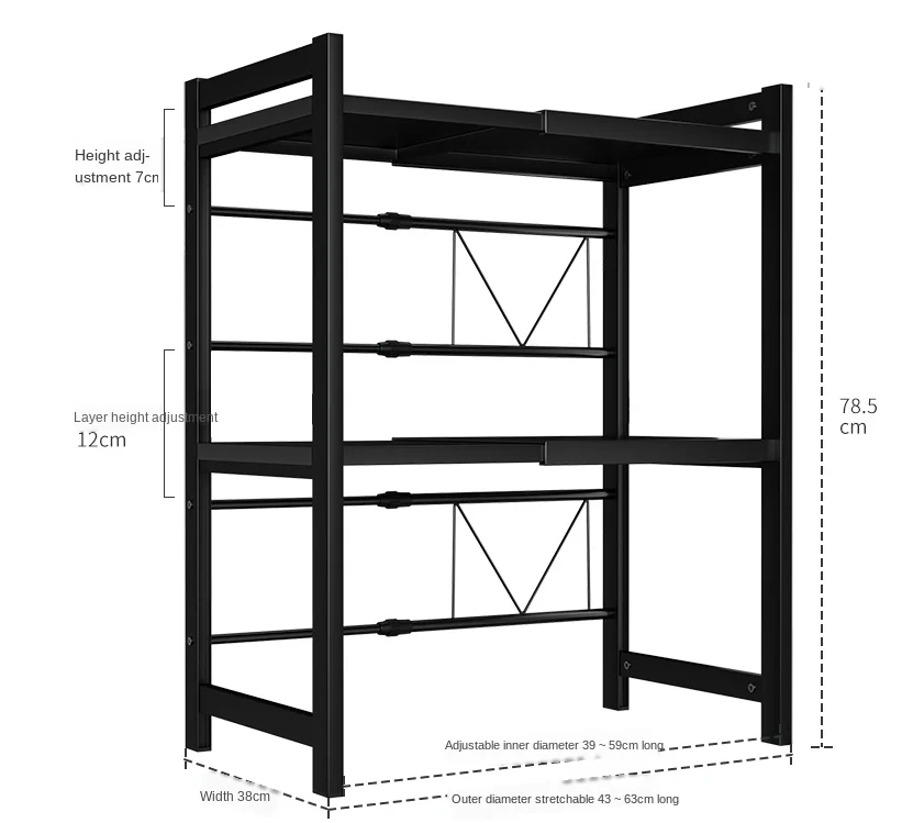 | Kitchen microwave rack retractable adjustment table top electric rice cooker oven double layer storage rack kitchen appliances |