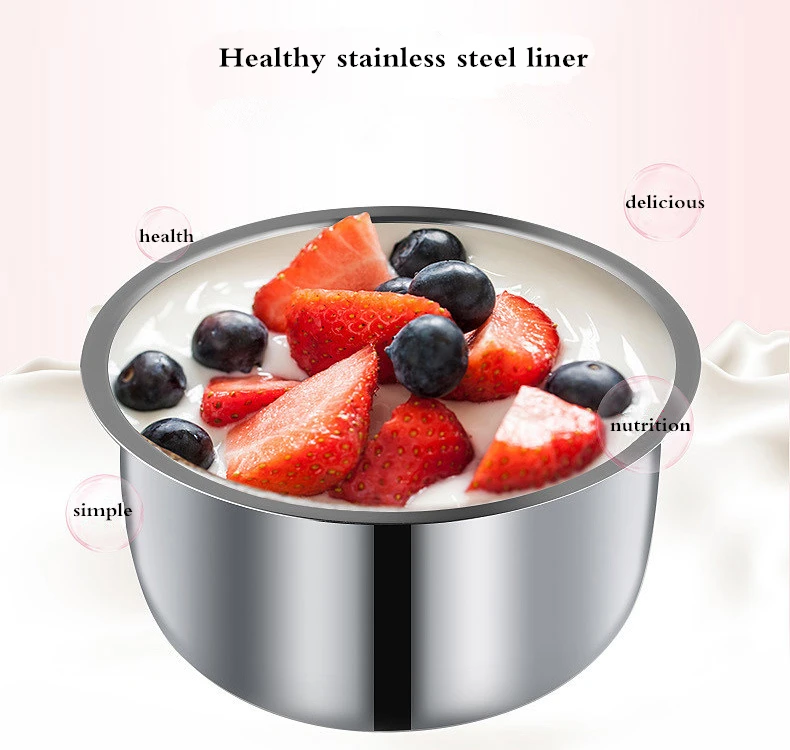 Yogurt maker Healthy stainless steel linerMade of all steel, no rust, easy to clean, clean and hygienic.