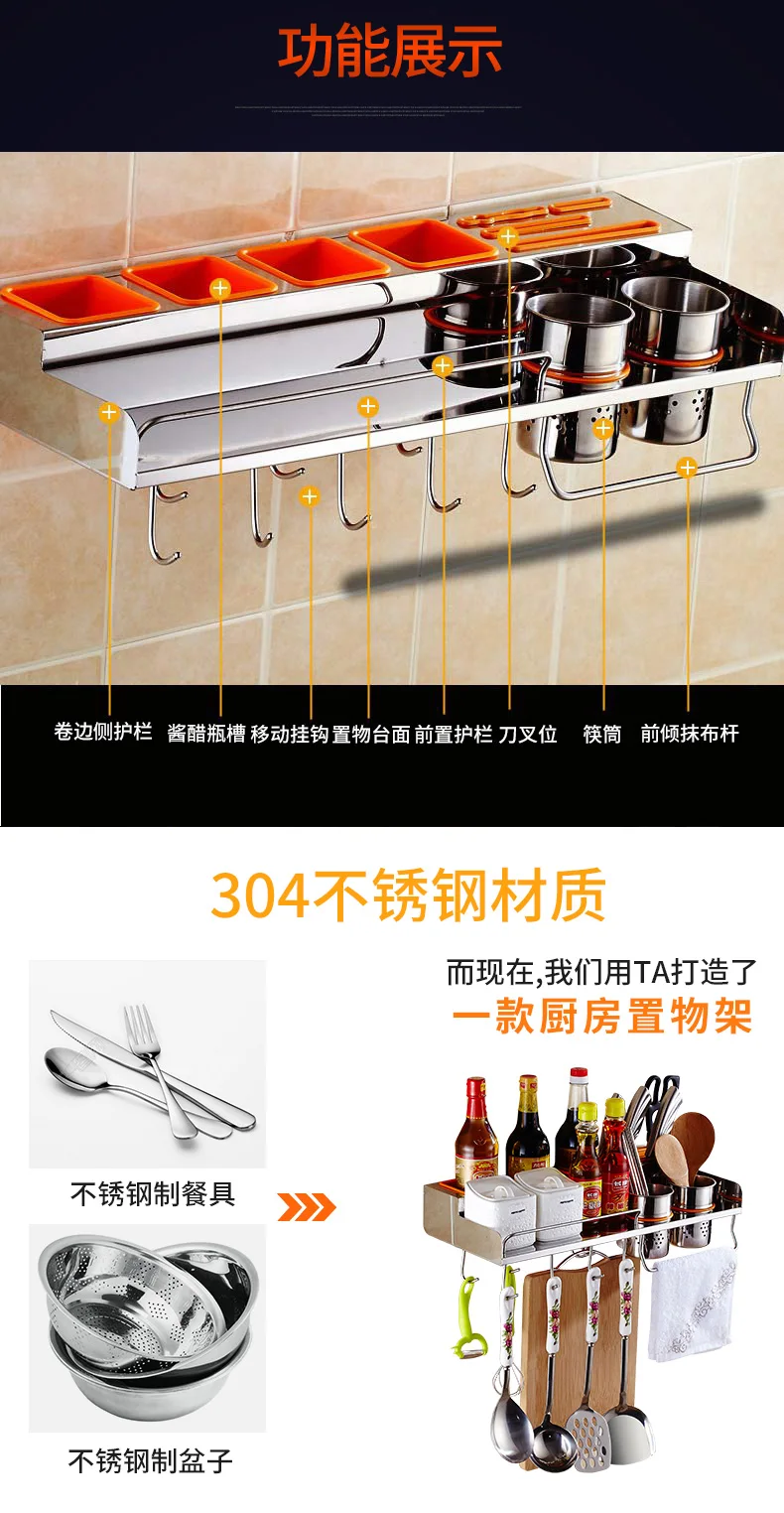 That's all the articles 304 stainless steel multi-function kitchen shelf wall hanging kitchen