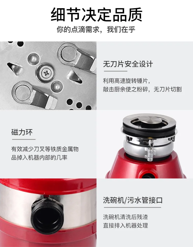 kitchen food garbage disposal crusher food waste disposers Stainless steel Grinder material kitchen appliances