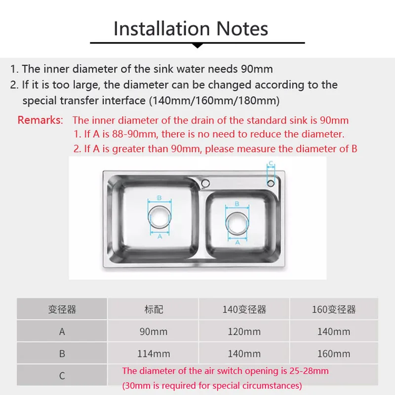 Air Switch & Overload Protection: One bottom solves the kitchen garbage. The air switch utilizes the pneumatic principle, makes it easier and safer to start the machine. The reset overload protector at the bottom protects the motor when its overloaded, overheated, and so on, extending the life of the motor, so please keep it touchable when install.