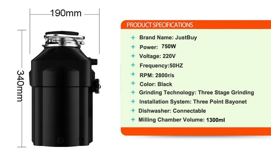 High-Speed Quiet Motor & Big Capacity: This food garbage disposal features an energy-efficient and high-speed 2800 RPM motor. It has more power and higher efficiency than other comparative disposals, which significantly lessen the possibility of jams. Additionally, the noise level of the motor is below 50 decibels making it the quietest grinding sound you can ever get. The grinding chamber of 1300ml capacity helps to deal with more waste. --Voltage:220V-240V --Can be conneted Dish Washer