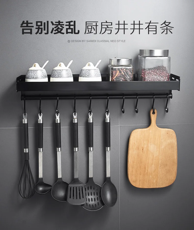 Such is the article Black Wall Mounted Kitchen Racks with Hooks Space Aluminum Storage Shelf Kitchen Appliances Spice Rack Kitchen Rack Organizer