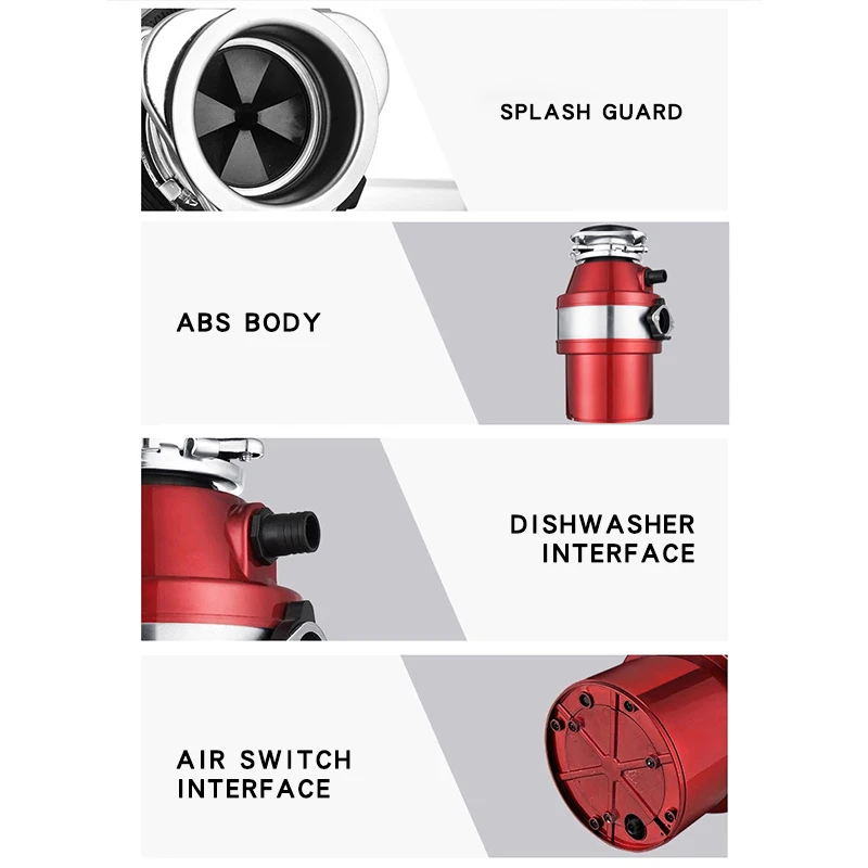Air Switch & Overload Protection: One bottom solves the kitchen garbage. The air switch utilizes the pneumatic principle, makes it easier and safer to start the machine. The reset overload protector at the bottom protects the motor when its overloaded, overheated, and so on, extending the life of the motor, so please keep it touchable when install.