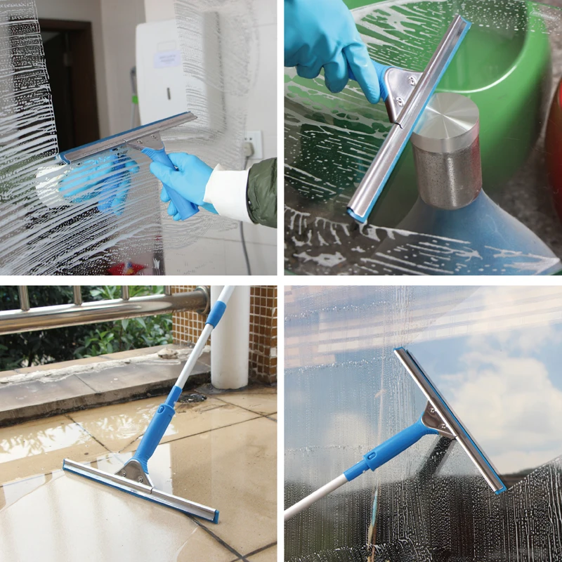 1. Made with high quality matte stainless steel,more elegant.2. Plastic ergo handle has a streamline design to fit better the hand grips of operator,light in weight more comfort in works and carrying. Provide the best cleaning effect.3. All components are replaceable.Usage: window squeegee ,glass squeegee,floor wiper