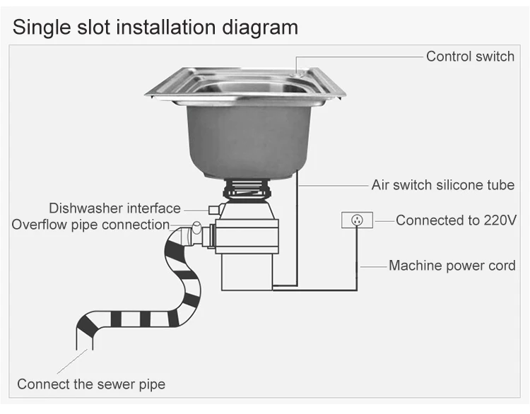 1.Wireless Switch,safe non-electrical control, anti leakage, can be used normally in wet and water environment.2.1100ml large capacity grinding silo,Meet your needs for capacity of food waste.3.Double-layer multi-stage grinding, Liquid-grade grinding, grinding kitchen waste,Particles <2 mm,does not block the sewer.4.D5 intelligent system,560W powerful horsepower,overload shock absorption design,easily solve kitchen waste.5.Multiple noise reduction,smart mute.Equilibrium point of the alloy, with a good balance of performance and stability, low motor noise, anti vibration ability.6.Can be conneted dish washer,three-point snap-fast installation design allows multiple disassembly,easy removal when moving,without professionals.