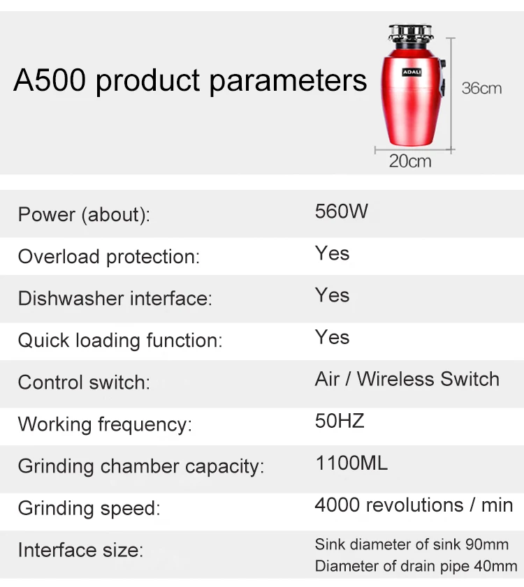 | ADALI Food Waste Disposer Wireless Switch 560W High Horsepower Copper Motor Residue Garbage Processor Grinder kitchen appliances |