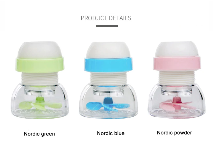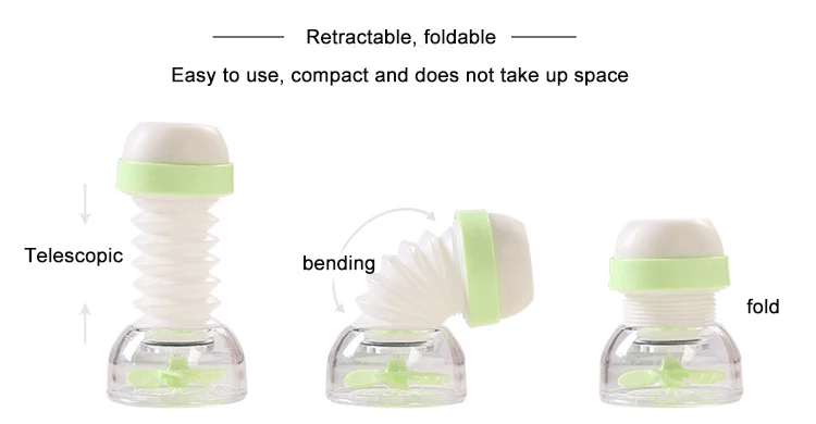 Product information Product Name: 360 ° rotating shower Size: about 2.5 * 6 * 4.5cm, suitable for the outlet of 16-19mm in diameter Material: PP + PVC Packing: Blister card Color: Nordic blue, Nordic pink, Nordic green Weight: about 40gRetractable 360 ° splash-proof shower