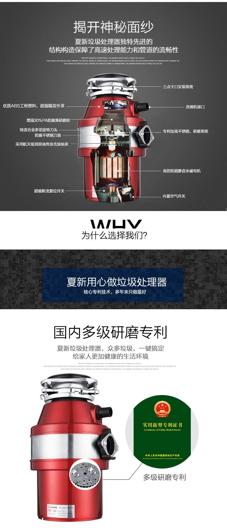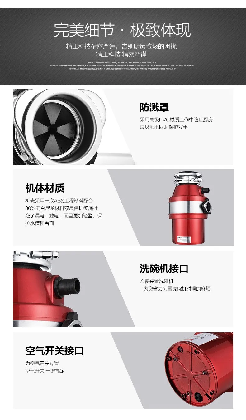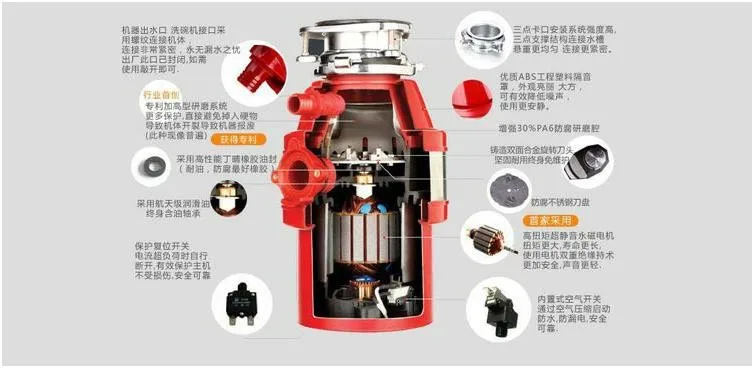 | kitchen food garbage disposal crusher food waste disposers Stainless steel Grinder material kitchen appliances |