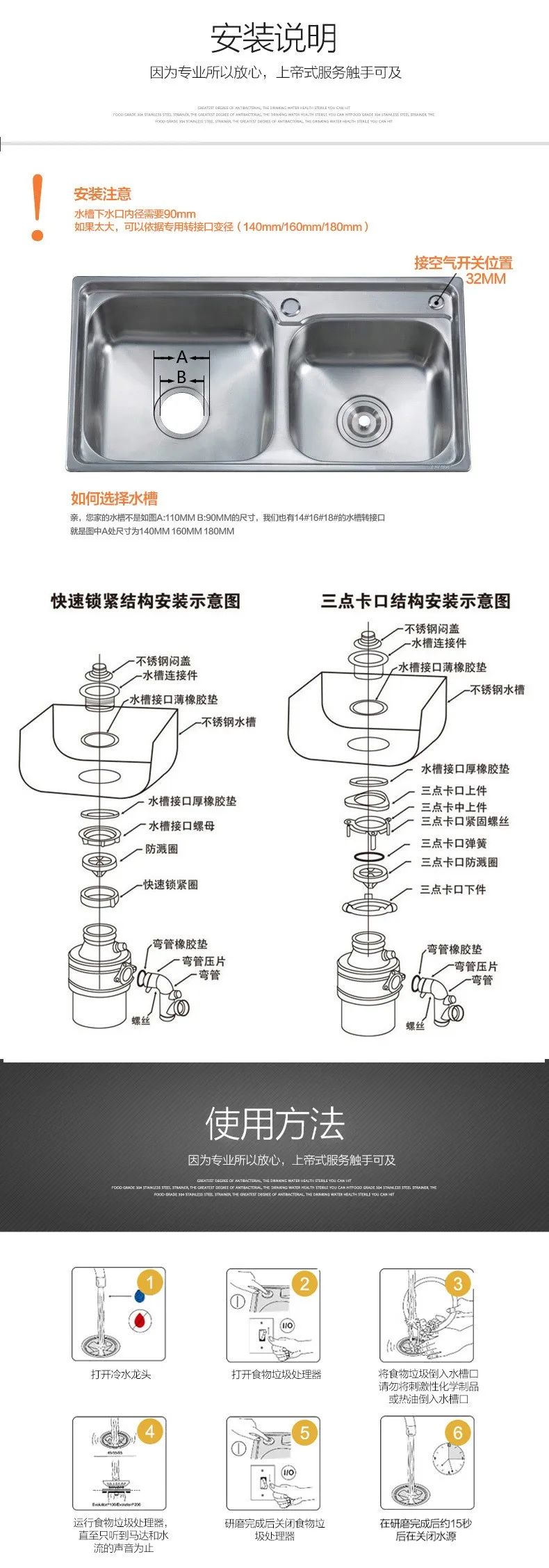 link : kitchen food garbage disposal crusher food waste disposers Stainless steel Grinder material kitchen appliances