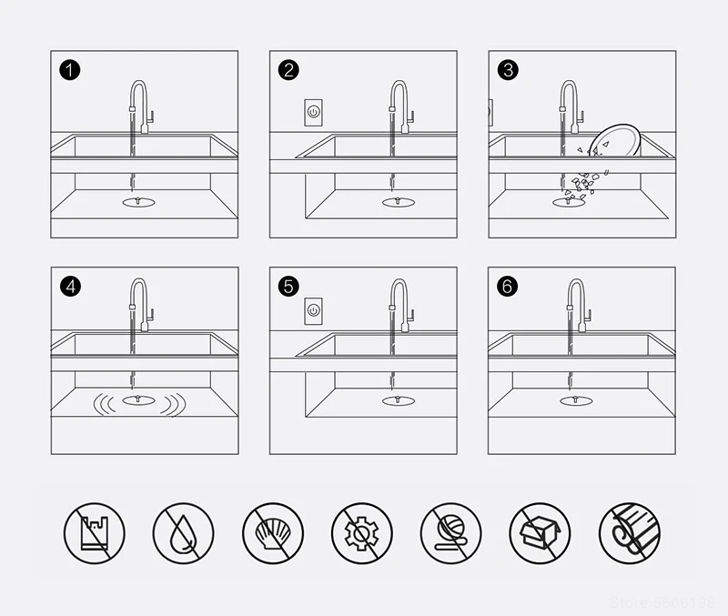 1. Turn on the cold water tap2. Turn on the remote control switch3.Pour food waste into the sink4. Run the processor until you hear only the sound of the motor and water5. Turn off the processor after grinding is completeTurn off the water source after 6.15 seconds* In order to prevent the negative work from affecting the life of the machine, the product will automatically stop after 3 minutes of continuous work. To continue working, you need to press the switch again.