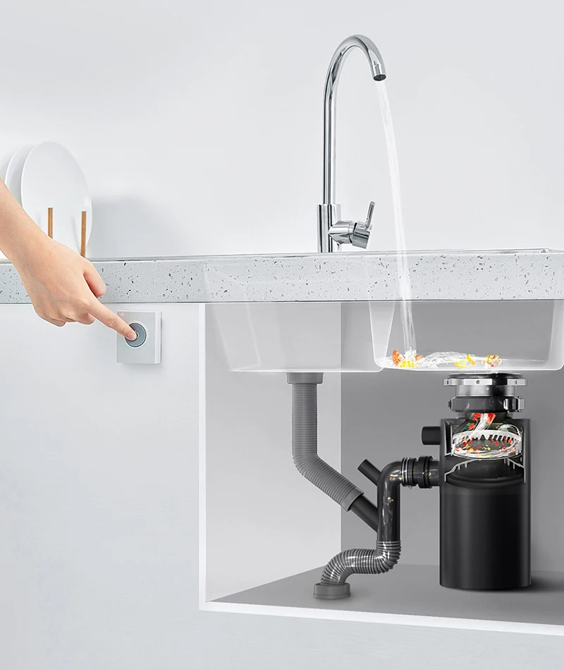Unlike the plastic body of ordinary garbage processors, the all-metal shell of the kitchen is matte and durable.