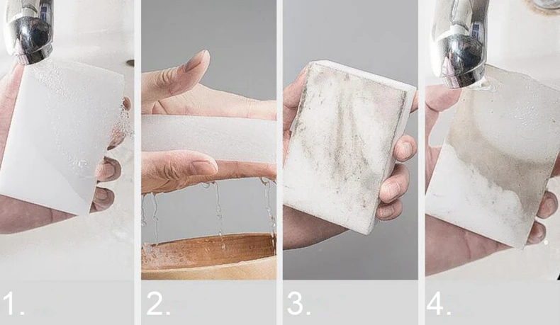 1. Absorb water with Eco-friendly Magic Sponge and Squeeze out gently.