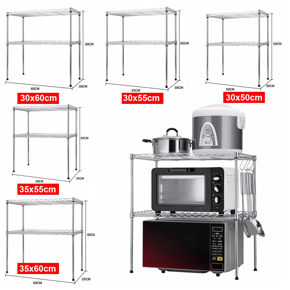 link : Double-layer Large Capacity Stainless Steel Microwave Oven Rack + Hook Kitchen Storage Holder Kitchen Appliances Storage