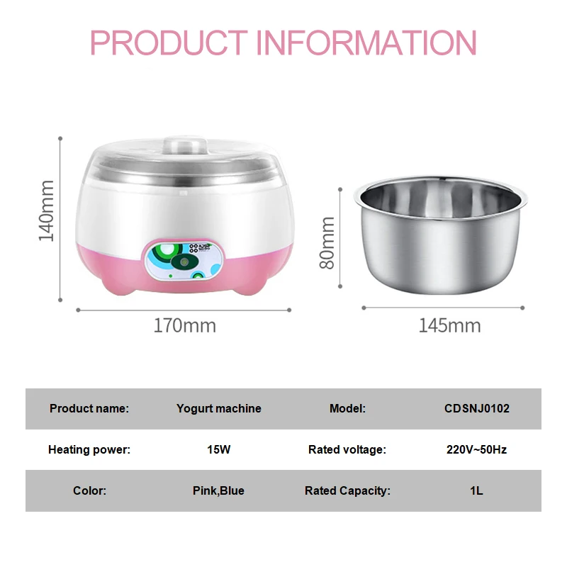 | 220V Yogurt maker 1L Full-Automatic Yogurt machine Household DIY Yogurt tools Kitchen appliance Stainless steel liner |