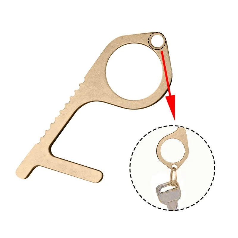 [Portable:] Size of 3\"x1.25\"x0.25\", made from a solid piece of brass. The Hygiene Hand is easy to operate, small in size, easy to carry, and very safe,very comfortable to use.[Multifuctional:] Necessary artifacts, door handles, touch keys, buttons, auxiliary precautions, folding sticks, handles, gifts, etc. Easy to press buttons, move a chair, flush a toilet, and carry grocery bags, etc.[Protection:] Avoid direct contact with the shared surfaces, replace our hands to contact public equipment totally. Perfect for avoiding dirt and pollution that exists on public drawer,door handle, elevator button and so on.[Best Gift:] A must have for everyone. The best gift for your friends, lovers, family.[Guarantee:] FBA STOCK. US STOCK. The most fast delivery. If you have any problems, you can contact us all the time.
